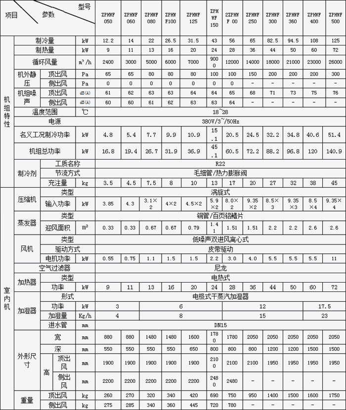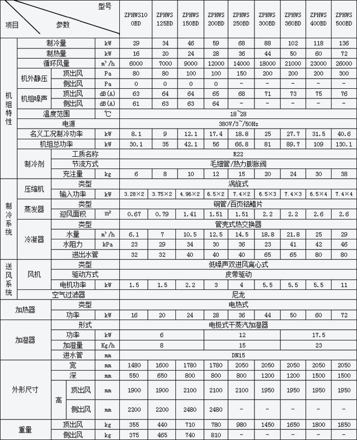 2.機組正常運行范圍:制冷時:室內進風溫度18℃~28℃,進水溫度20℃~34℃;